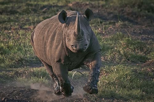A Black Rhino charging our game vehicle in Tembe Elephant Park.