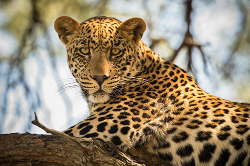 A young leopard in a Camel Thorn Tree in Marataba.